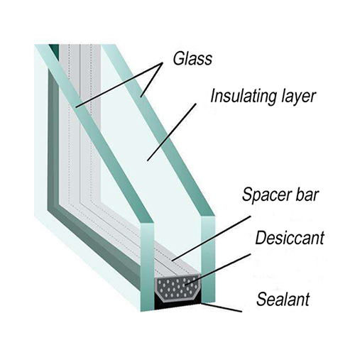 Insulating glass is a glass product in which two or more pieces of glass are evenly spaced with effective support and bonded and sealed around the edges to form a dry gas space between the glass layers. Its main materials are glass, warm edge spacers, corner bolts, butyl rubber, polysulfide rubber, and desiccant.